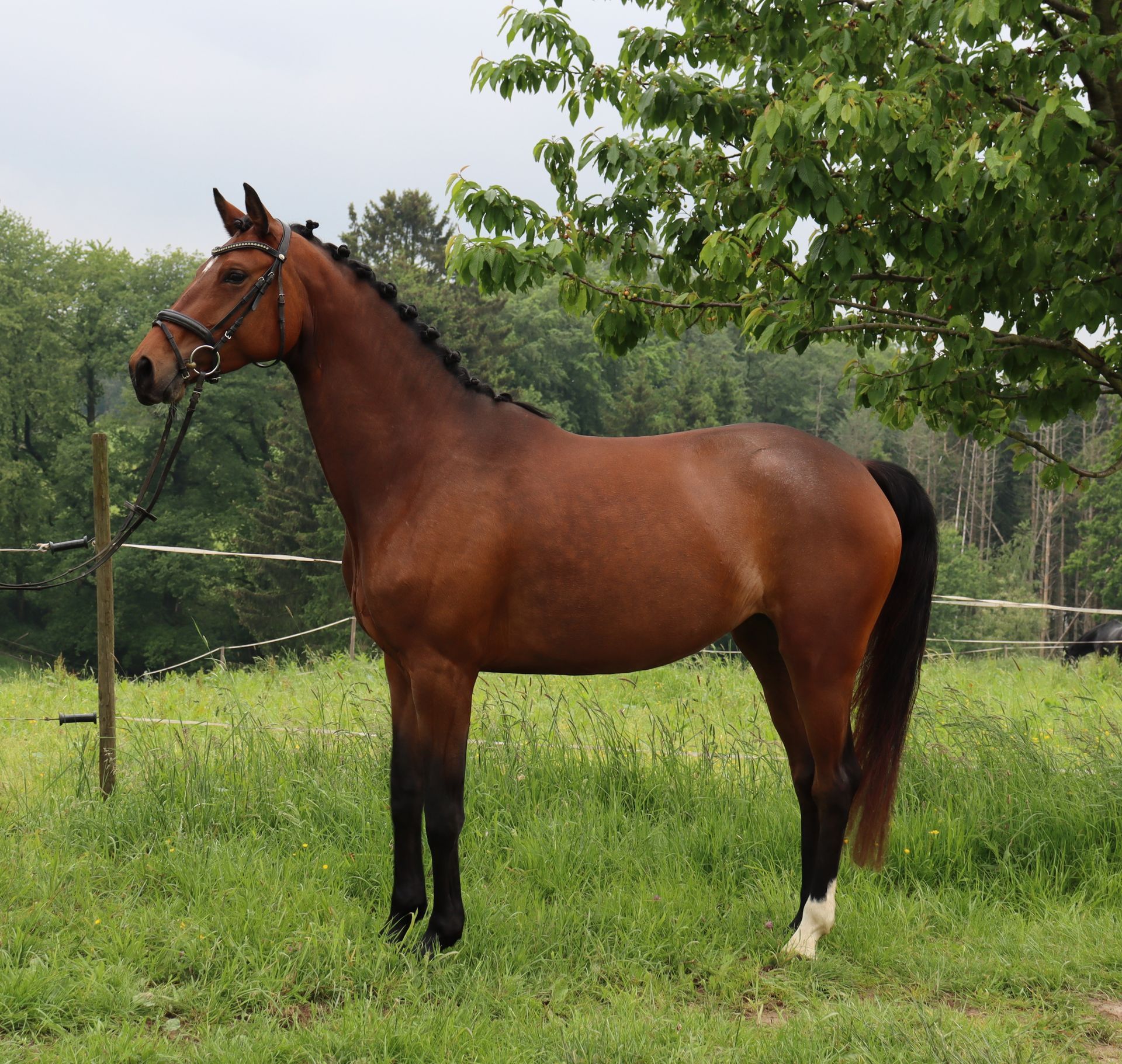 Bijou H ist eine bildschöne 6 jährige Stute von Blockbuster aus unserer His Wakita ( His Highness / Westwall / Argentan ). Sie wurde im Frühjahr 2022 angeritten und schonend bis zur Klasse L (Dressur) ausgebildet. Sie ist fein und spielerisch zu Reiten und versucht ihrem Reiter alles Recht zu machen. Bijou hat ein liebes unerschrockenes Wesen und reagiert auf neues aufgeschlossen und neugierig. Ein tolles Pferd, dass ein 5 Sterne Zuhause sucht.